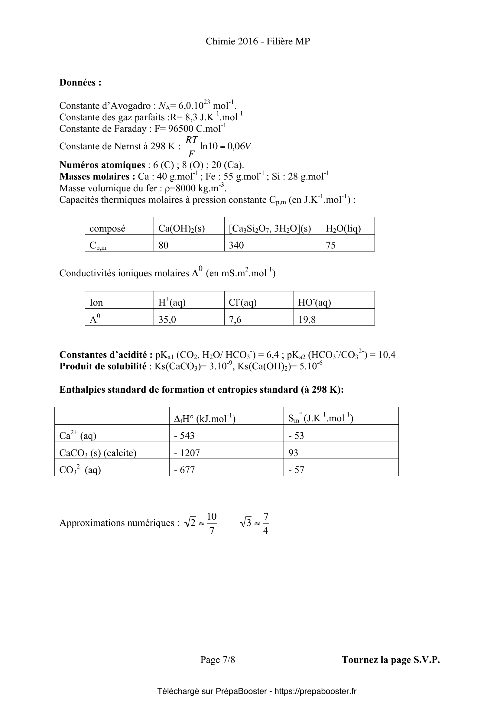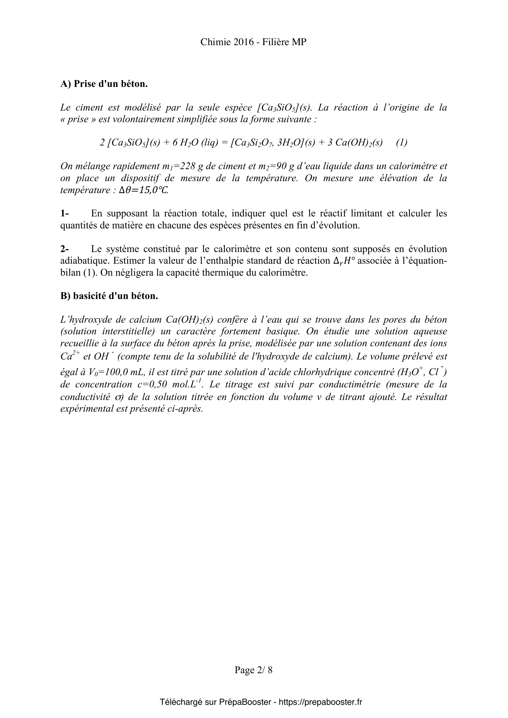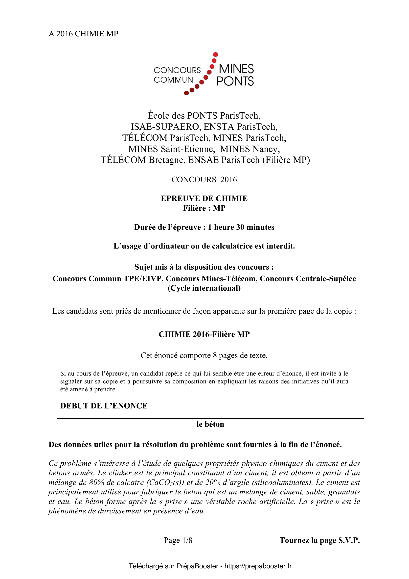 Ce sujet de Chimie du concours Mines Ponts MP 2016 correspond aux épreuves disponibles sur le site officiel du concours Mines Ponts. Retrouve sur Prépa Booster toutes les ressources nécessaires pour ta préparation, y compris les corrigés détaillés.