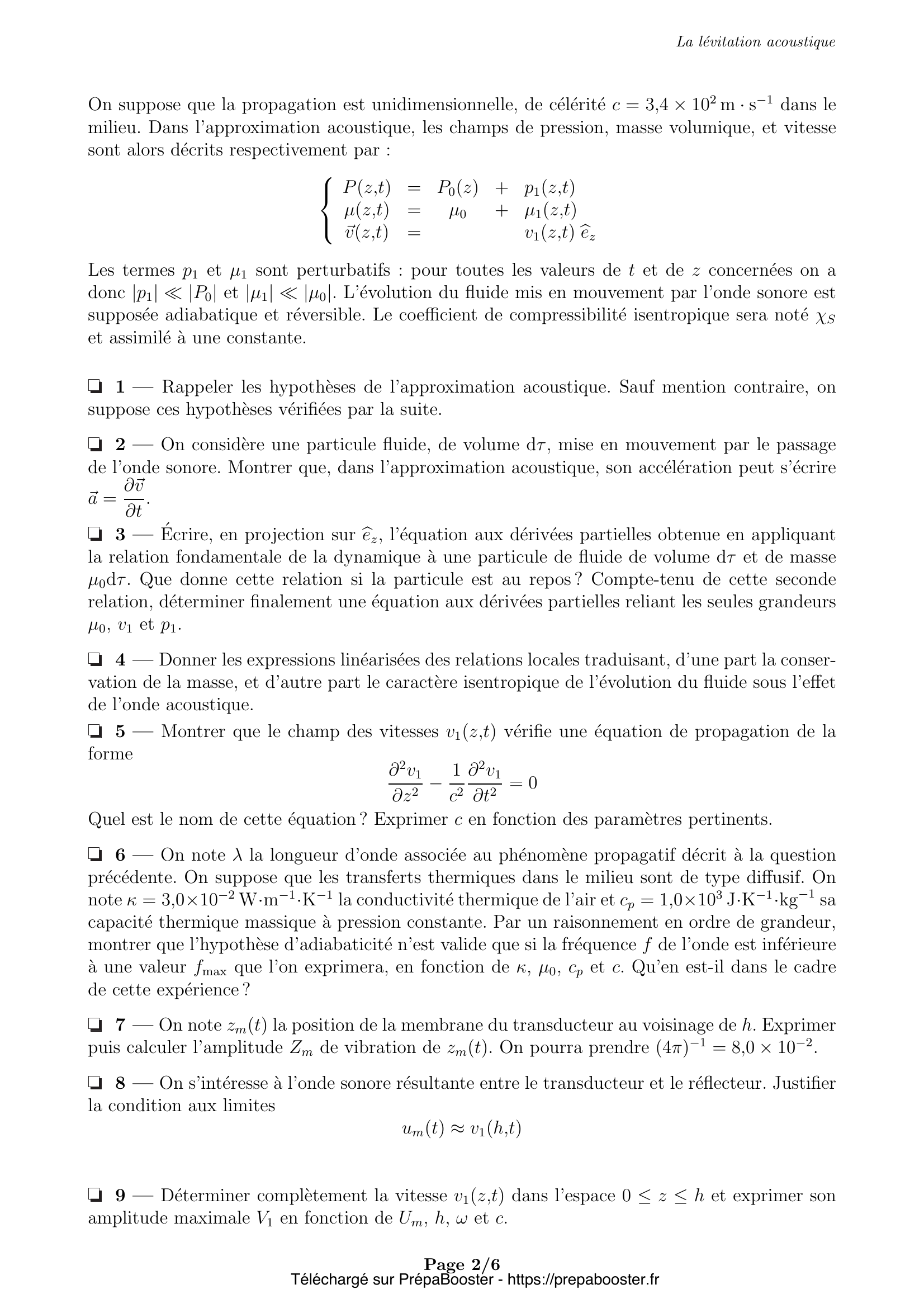 Énoncé Mines Ponts 2020 – PSI – Physique 2