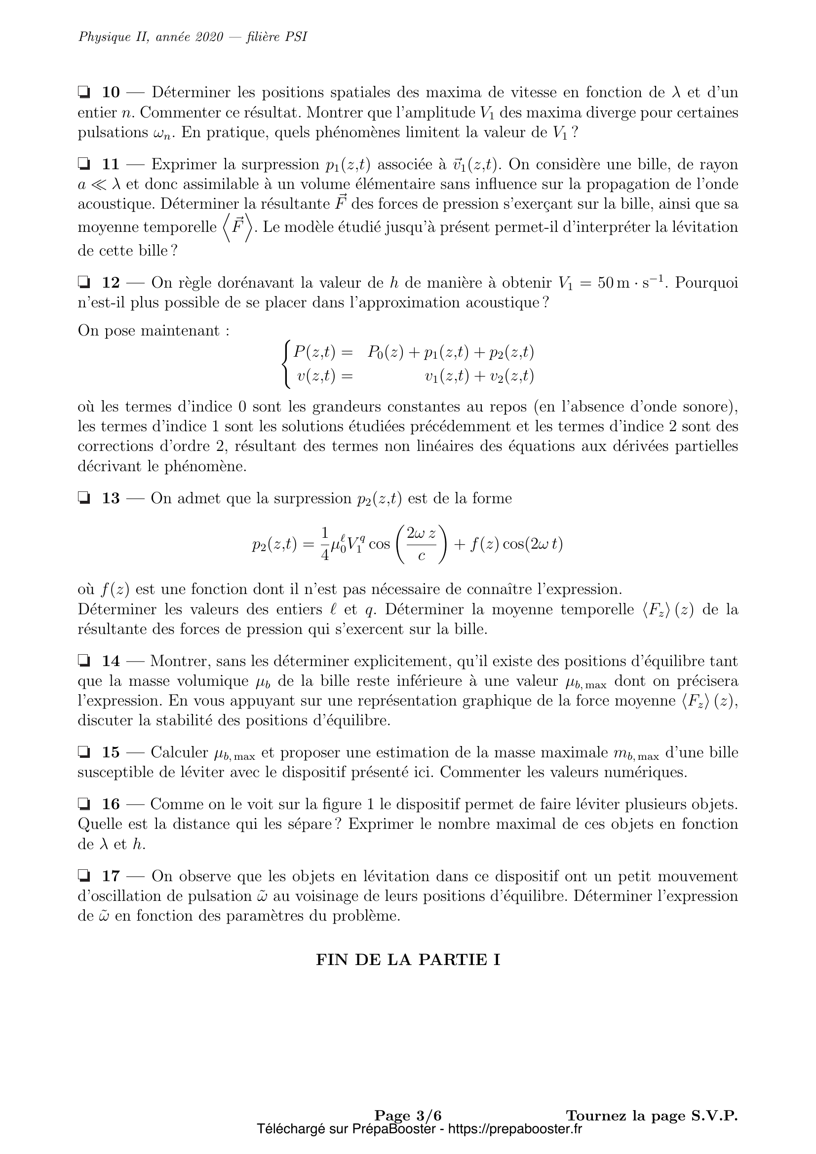 Énoncé de l’épreuve Mines Ponts Physique PSI 2020