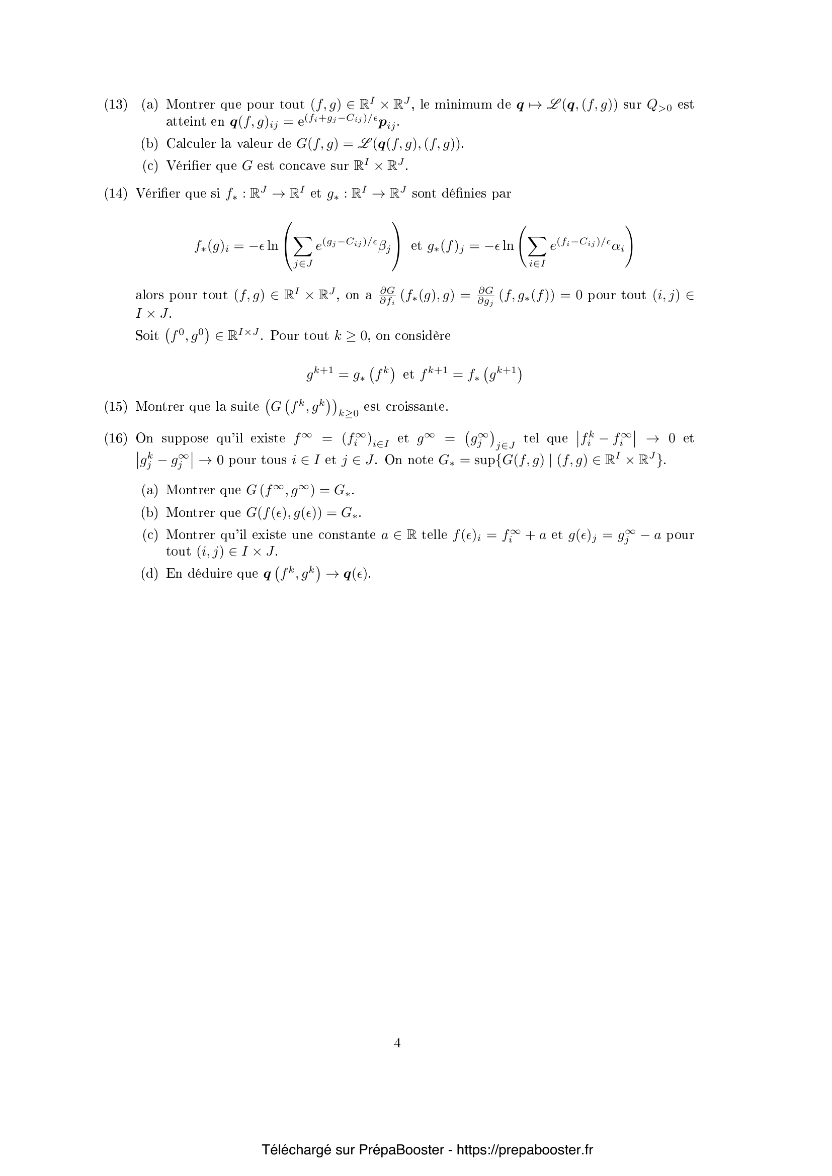 10. Soient C = (C_{ij})_{(i,j)\in I\times J} \in \mathbb{R}_+^{I \times J} et \varepsilon > 0. On considère $J_\varepsilon : Q \rightarrow \mathbb{R}$ définie par :\\