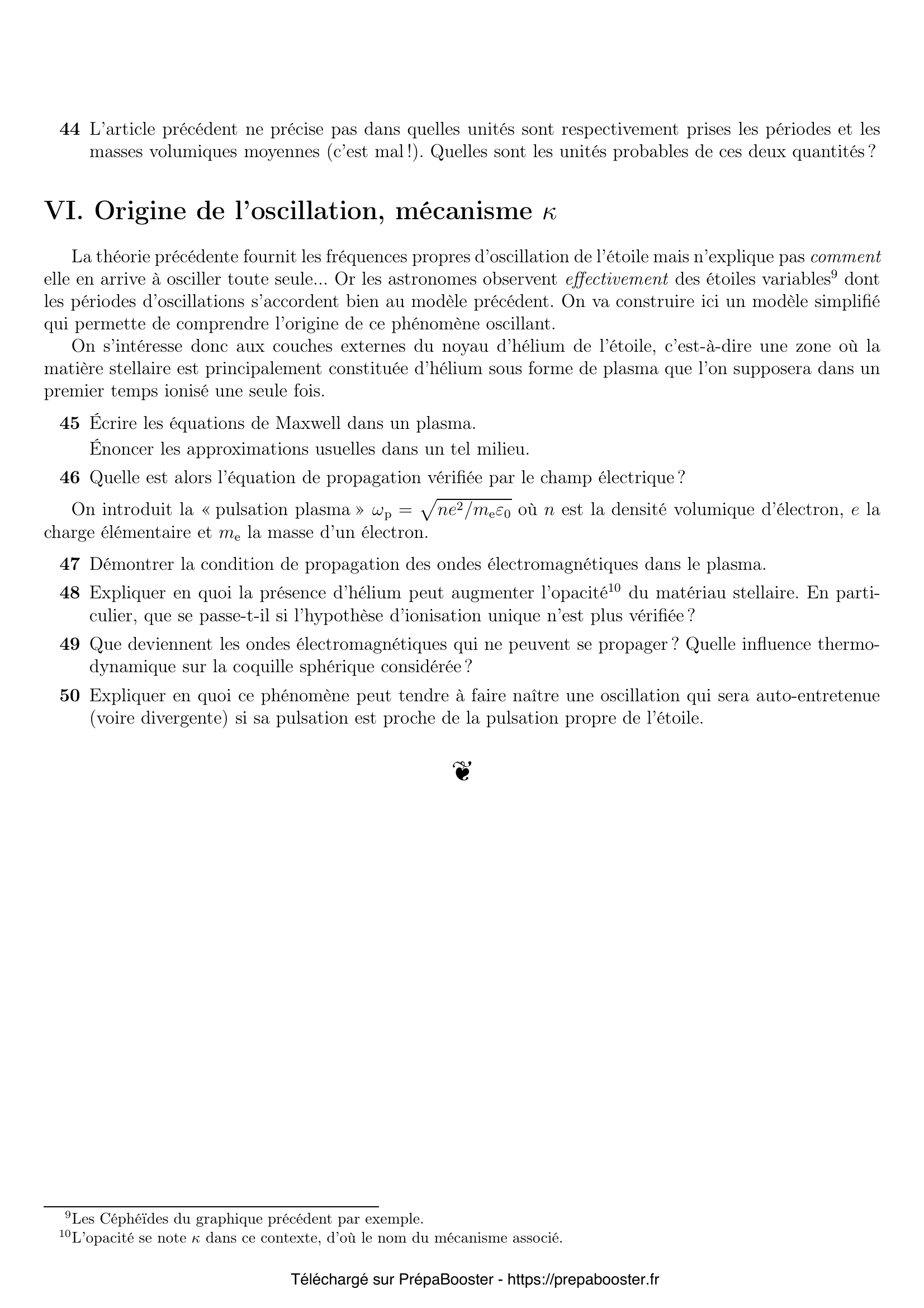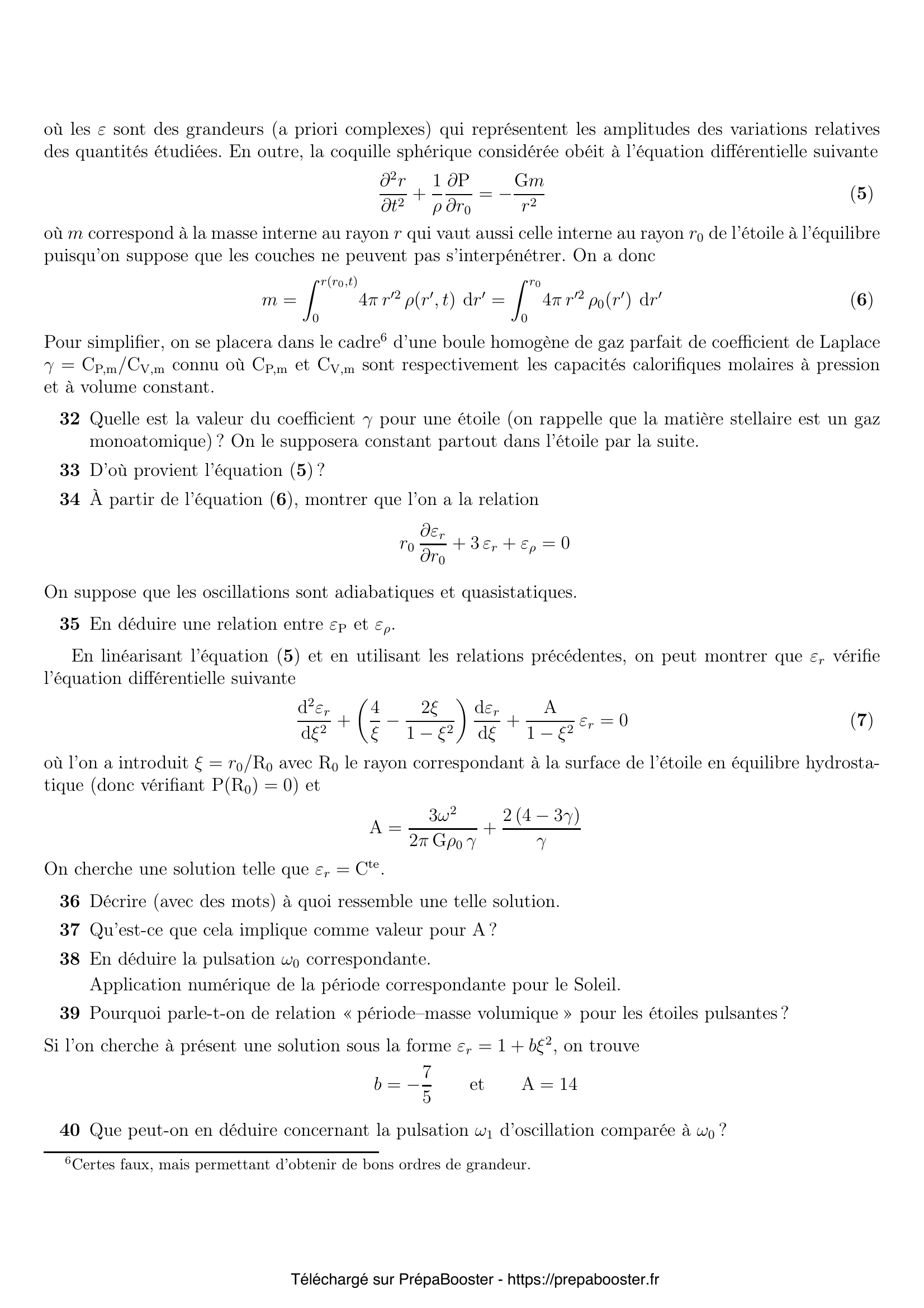50. Expliquer en quoi ce phénomène peut tendre à faire naître une oscillation qui sera auto-entretenue (voire divergente) si sa pulsation est proche de la pulsation propre de l’étoile.}