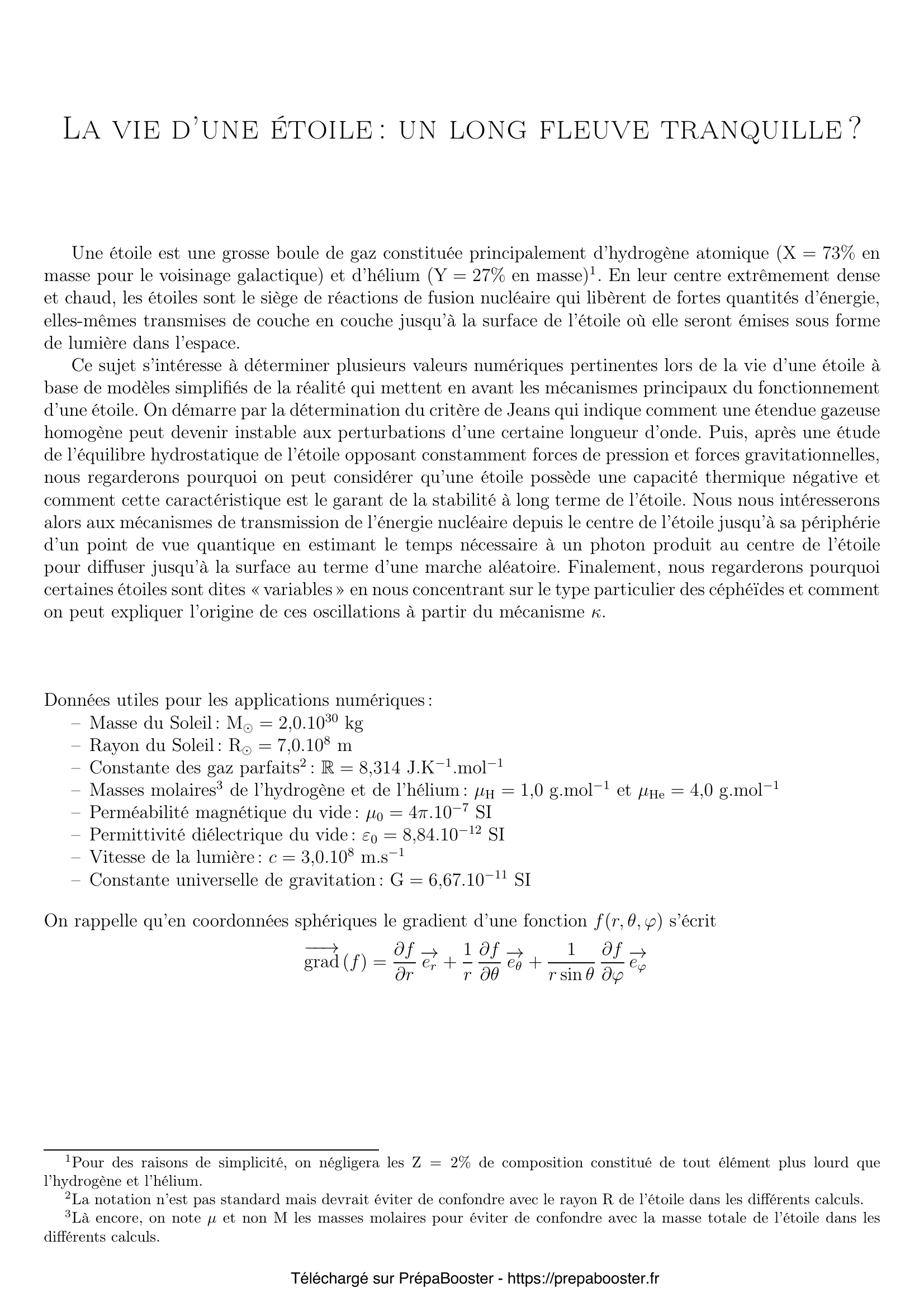 32. Quelle est la valeur du coefficient $\gamma$ pour une étoile (on rappelle que la matière stellaire est un gaz monoatomique) ? On le supposera constant partout dans l’étoile par la suite.