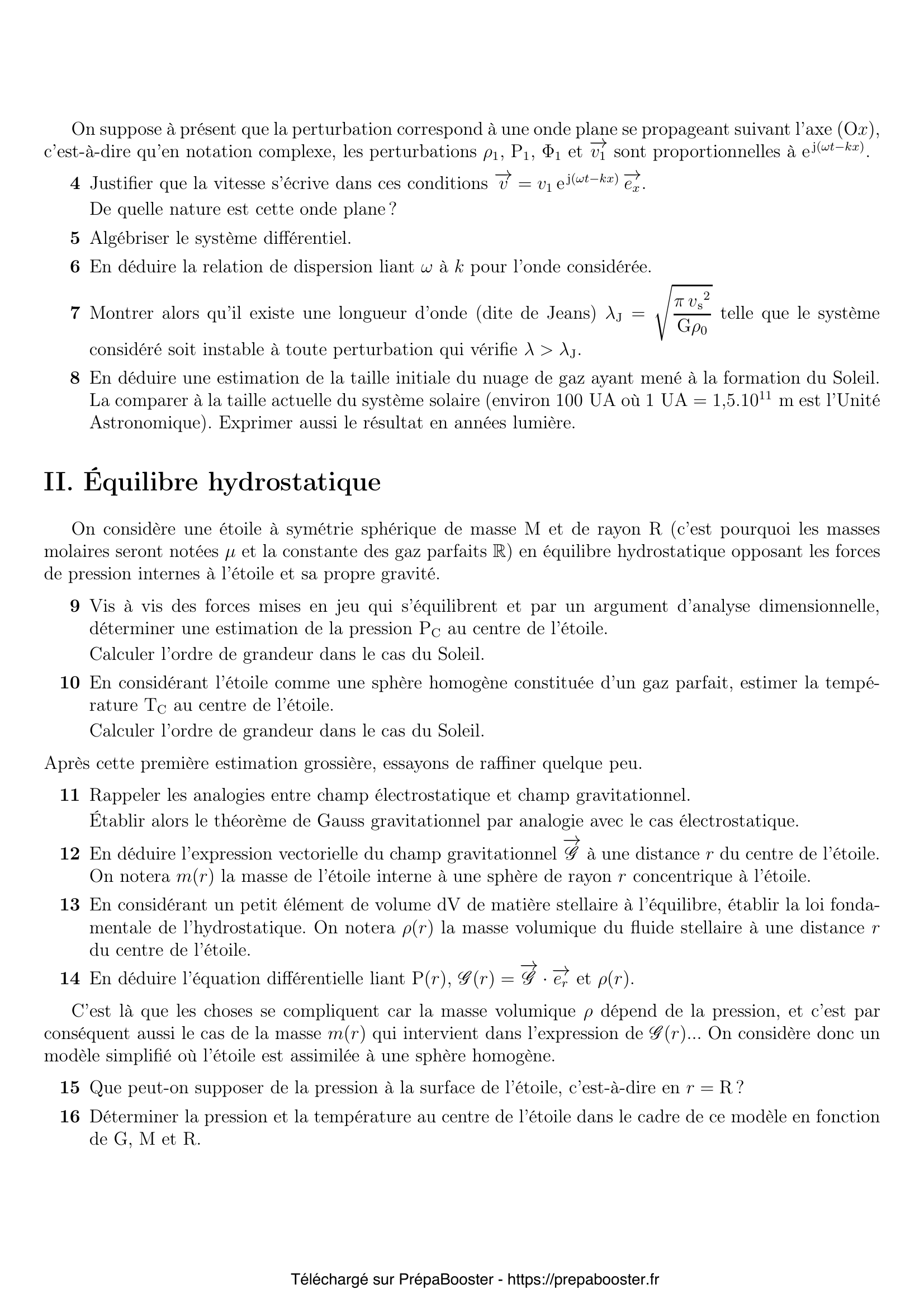 10. En considérant l’étoile comme une sphère homogène constituée d’un gaz parfait, estimer la température $T_C$ au centre de l’étoile. \\ Calculer l’ordre de grandeur dans le cas du Soleil.}