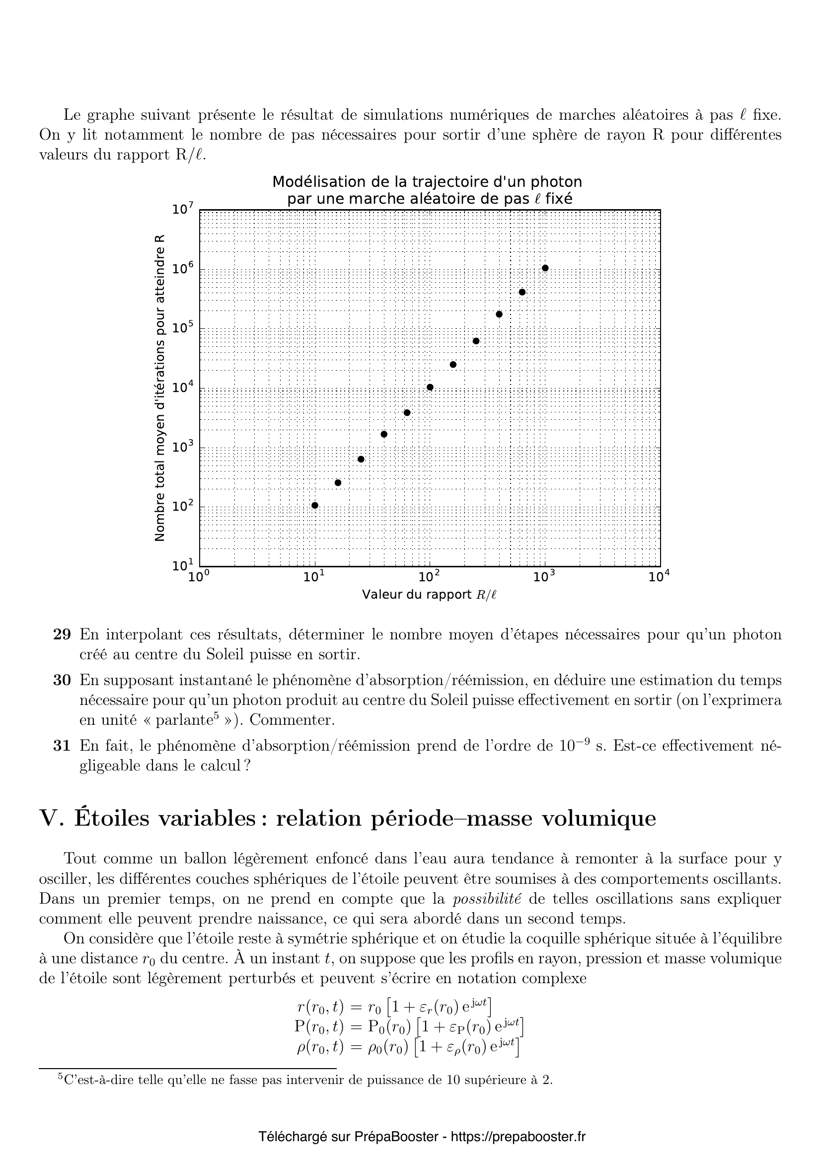 29. En interpolant ces résultats, déterminer le nombre moyen d’étapes nécessaires pour qu’un photon créé au centre du Soleil puisse en sortir.