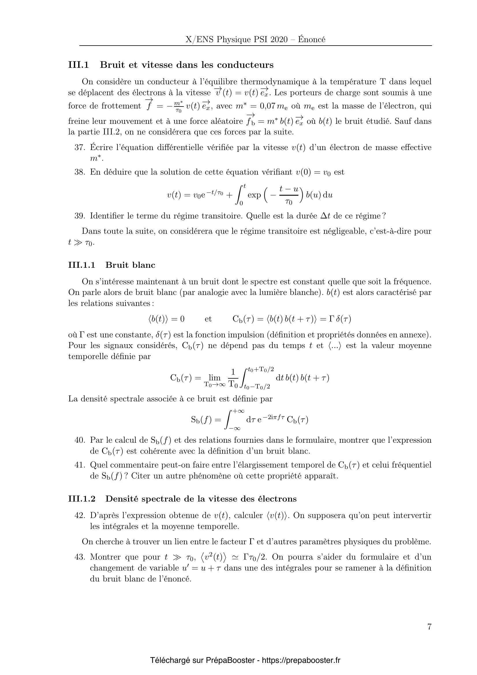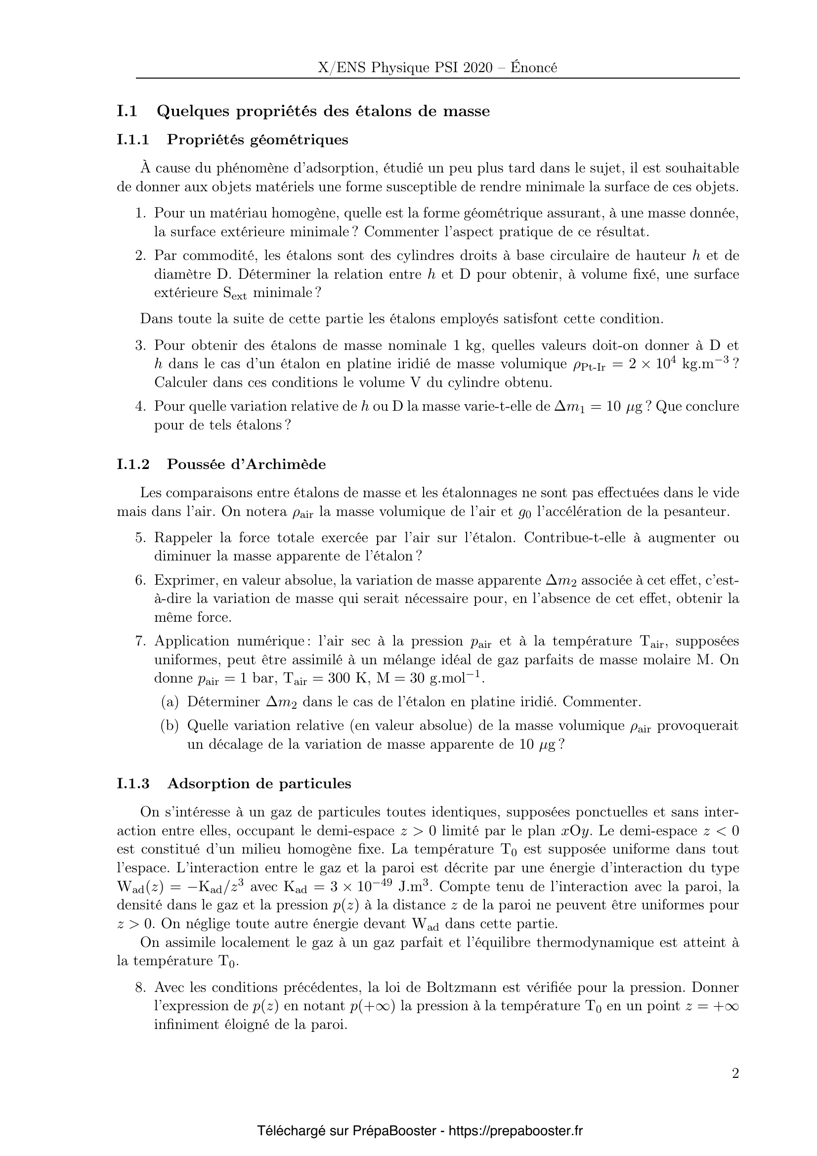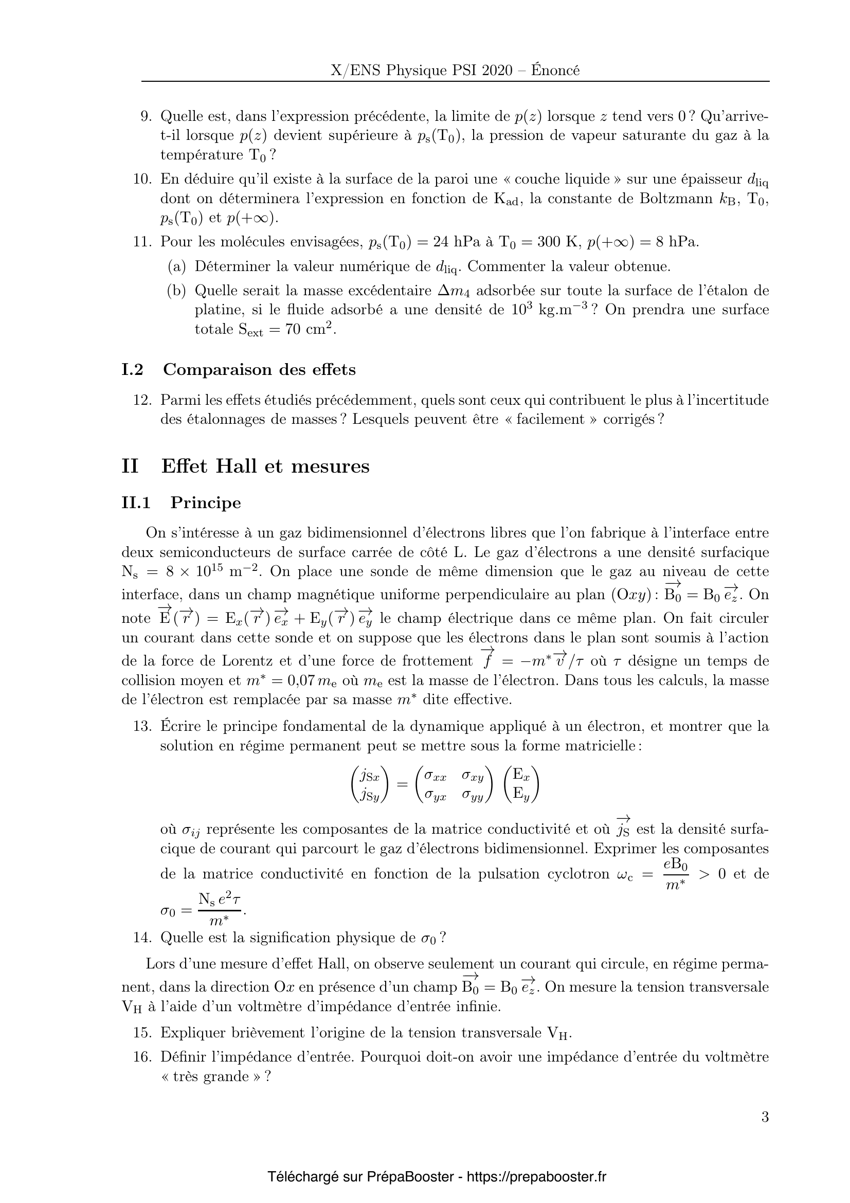 Énoncé de l’épreuve XENS Physique PSI 2020